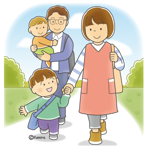 トップページクリップアート家族や親子のイラスト2>散歩をする家族のイラスト(カラー)